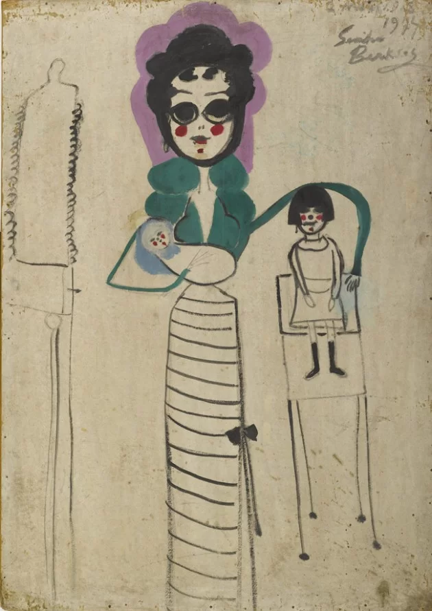 Semiha Berksoy’un resimlerinde annelik olgusu daha çok kendisi ve annesiyle olan ilişkisi üzerine kuruludur. Semiha Berksoy, annesi Fatma Saime Hanım’ı (kardeşine hamileyken) İspanyol gribine yakalanması sebebiyle kaybetmiş ve bir şekilde anne ile çocuk arasındaki bağa eserlerinde hep yer vermiştir. Sanatı aracılığı ile annesiyle fiziksel dünyanın ötesinde bir bağ kurduğunun altını çizer ve yine sanatında otobiyografik öğelere yer vererek, hayatına ve ailesiyle olan ilişkisinin onda yarattıklarına dair olan kalıntıları gözlemleyebilmemizi sağlar. Halüsinasyon Duvarı’nda, artık hayatında olmayıp sanatında ve kişiliğinde etkisi olan karakterleri mistik bir biçimde ama oyuncu bir biçimde yansıtır. Saime Hanım, Semiha Berksoy’un üzerinden uzanan koluyla onu sarıp sarmalar ve güvene alır. Fatma Saime Hanım’ın en sevdiği eflatun rengi ise masalsı bir hareyi oluşturur.