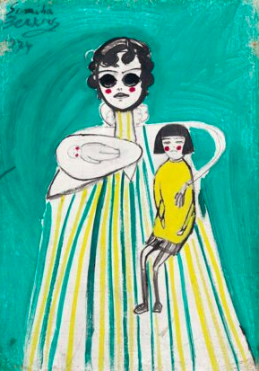 Semiha Berksoy’un resimlerinde annelik olgusu daha çok kendisi ve annesiyle olan ilişkisi üzerine kuruludur. Semiha Berksoy, annesi Fatma Saime Hanım’ı (kardeşine hamileyken) İspanyol gribine yakalanması sebebiyle kaybetmiş ve bir şekilde anne ile çocuk arasındaki bağa eserlerinde hep yer vermiştir. Sanatı aracılığı ile annesiyle fiziksel dünyanın ötesinde bir bağ kurduğunun altını çizer ve yine sanatında otobiyografik öğelere yer vererek, hayatına ve ailesiyle olan ilişkisinin onda yarattıklarına dair olan kalıntıları gözlemleyebilmemizi sağlar. Halüsinasyon Duvarı’nda, artık hayatında olmayıp sanatında ve kişiliğinde etkisi olan karakterleri mistik bir biçimde ama oyuncu bir biçimde yansıtır. Saime Hanım, Semiha Berksoy’un üzerinden uzanan koluyla onu sarıp sarmalar ve güvene alır. Fatma Saime Hanım’ın en sevdiği eflatun rengi ise masalsı bir hareyi oluşturur.