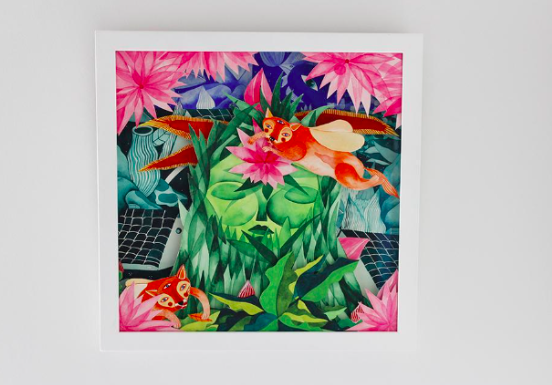 States isimli bu eserinde ise, uyuyan yeşil doğa ana formu ve çiçekler ile tilki formlarının bir arada oluşu; kırılganlık ve yeniden doğmanın-doğa ana ile dışa vurumunu yansıtırken; “Healer” bize anlatıyor ki, iyileşme sürecinde yalnız değiliz. Biz, sen ve farklı bir evrende kendi iyileşme sürecinde olan o sayısız formlar; kendi yolculuğumuzda ve kendi yollarımızda-kendimize özgü hızlarla ilerliyor olacağız. Ancak hatırlayacağız ki, içinde bulunduğumuz bu kolektif hislerin bizi götüreceği yeri; Zeynep Solakoğlu’nun hayat verdiği “Healer” evrenindeki yeşil, birbine bağlı