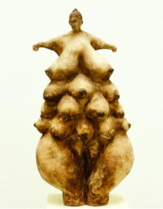 Ecem Yerman’a ait bu eserin boyut ve neden yapıldığı bilgilerine ulaşamadım ancak adına ulaştım, Meme Meme. Bence kesinlikle çok yerinde ve açıklayıcı bir isim olmuş. Ecem Yerman genel olarak normun dışında kalmış bedenleri temsil eden ve toplumsal cinsiyet rollerimizin yapaylığı vurgulayan eserler üretmeye çalışıyor. Ecem Yerman’ın eserleri genel olarak ilgimi çekti ancak bu eseri ayrı bir sevdiğimi söylemem gerekiyor. Kadın bedeni en saf ve doğal hali ile sergilenen bu kadın sanki ona bu şekilde görünmemesi gerektiğini söyleyen toplum ve insanlara yukarıdan bakıyor gibi bir izlenim verdi bana. Siz ne düşünüyorsunuz? (Ecem Yerman’ın diğer eserleri bu linkte.)