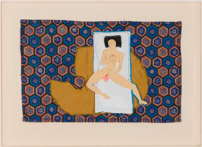 Şimdi bahsetmek istediğim eser ve sanatçı, Viyana ve İstanbul arasında yaşayan ama kıtalar arası eserleri üretmiş Nilbar Güreş. Eserin adı ise “Self-Defloration”. (2016/Kolaj, Kumaş 185×275) Nilbar bir röportajında bu projenin ilk feminist eseri olması sebebiyle kendisi için de önemli olduğunu söylüyor. Bu eser bir noktada Nilbar’ın da kendini büyürken nereye koyduğunu gözler önüne sere nitelikte. Üniversite ve büyüme çağında dünya çapında bir cinsiyet kodlaması ve baskı mevcut, bu eserdeki kadın ise bu baskı ve beklentiyi üzerinden atarak kendi, -ve buradaki mesajı anlatmak için bu kelimeyi kullanacağım yoksa bunun sadece bir sosyal norm olduğunu düşünüyorum- ‘bakireliğini’ bozuyor. Projenin adı da zaten bunu anlatıyor. Gücü beklenti ve toplumun elinden alarak kendine ve bedenine yüklüyor aslında sanatçı. (Nilbar Güreş’in diğer eserleri bu linkte.)